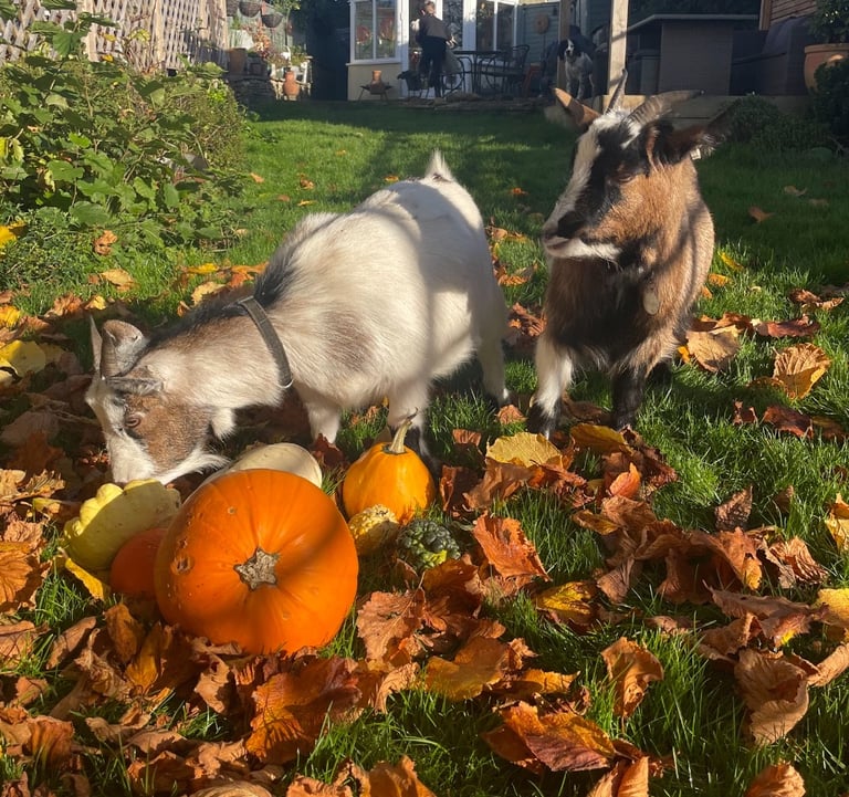 The Fire Table invites you to step away from the everyday and into the slower rhythm of life at Ash Croft (our Pygmy-scaled smallholding). Gather in the softly-lit shelter; a roofed, open-sided space with heating. The air is fresh, so wrap up warmly, but the food, drinks and atmosphere are full of comfort. Pygmy goats Joan and Dawn add their own gentle mischief, making sure no moment feels too serious as you carve pumpkins, weave wreathes or create wellbeing baskets.