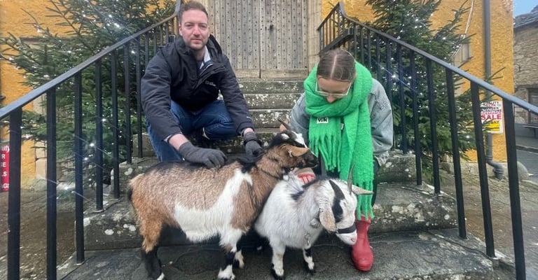 We then had a chat with Kathryn about her business and the goats and how best to meet them so as to create a good first impression. What stuck out to us was how ethically minded Kathryn is, and how the goats are at the centre of everything she does. We then met the goats in their garden kingdom, and took them on a lovely walk through Tetbury. We were guided round by Kathryn and her lovely and polite son, an absolute credit to her. The walk was informative and we came away with lovely photos of us with the goats as well as full to the brim with facts about the goats that we loved finding out.