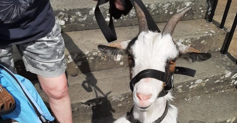 I decided to book this adventure for my friend Charlie and I because it looked like fun and we certainly weren’t disappointed. From the welcome drink and homemade goat biscuits to the beautiful picnic at the end also all homemade we had the most fantastic day. Now we mustn’t forget the stars of the show Joan and Dawn Kathryn’s pygmy goats. We had meet and greet with a wealth of knowledge from Kathryn so we could get to know our companions before setting out on a nice gentle walk into and around Tetbury. Accompanied by Kathryn who also has a great deal of knowledge about the area we certainly turned a few heads. On our return we were left to enjoy our picnic before foraging in Kathryn’s garden for some goodies for Joan and Dawn. If you are thinking of taking the same adventure I can highly recommend and you will be supporting this lovely lady and her two girls. Val on holiday from the Isle of Man 😊